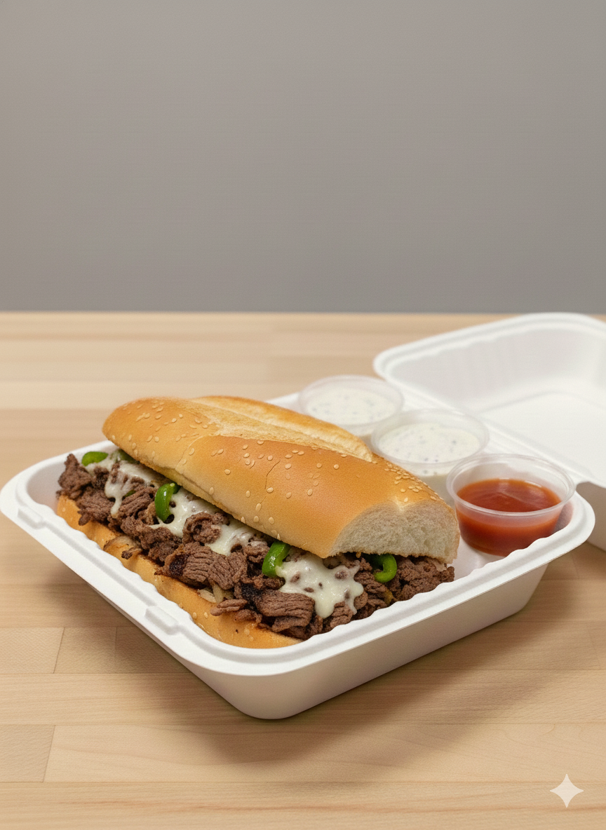 Tender, thinly sliced steak cooked with onions and bell peppers, topped with melted cheese, and served on a soft hero roll for a classic, savory Philly favorite.