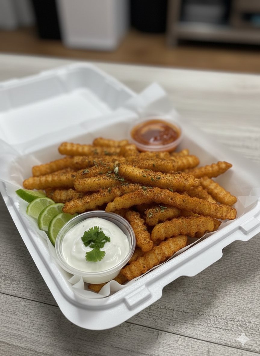 Golden, crispy fries tossed in a savory blend of spices for a perfectly flavorful and crunchy side that’s great on its own or alongside your favorite meal.